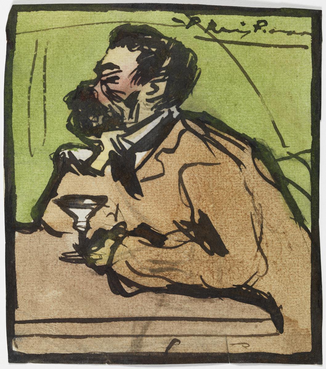 Pen and brush and ink, and watercolour on paper