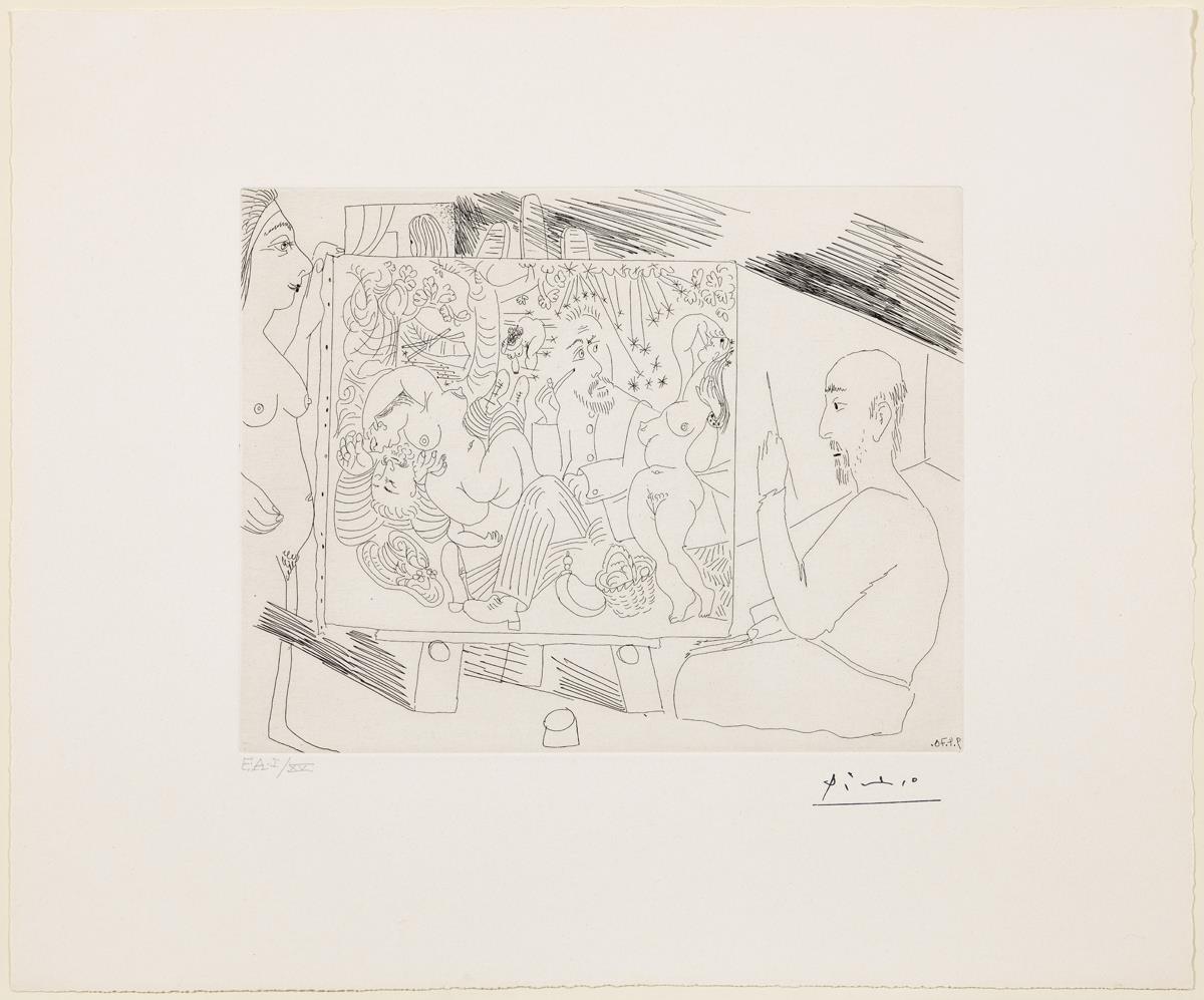 Legless Painter in His Atelier, Painting "Le déjeuner sur l'herbe", with a Model