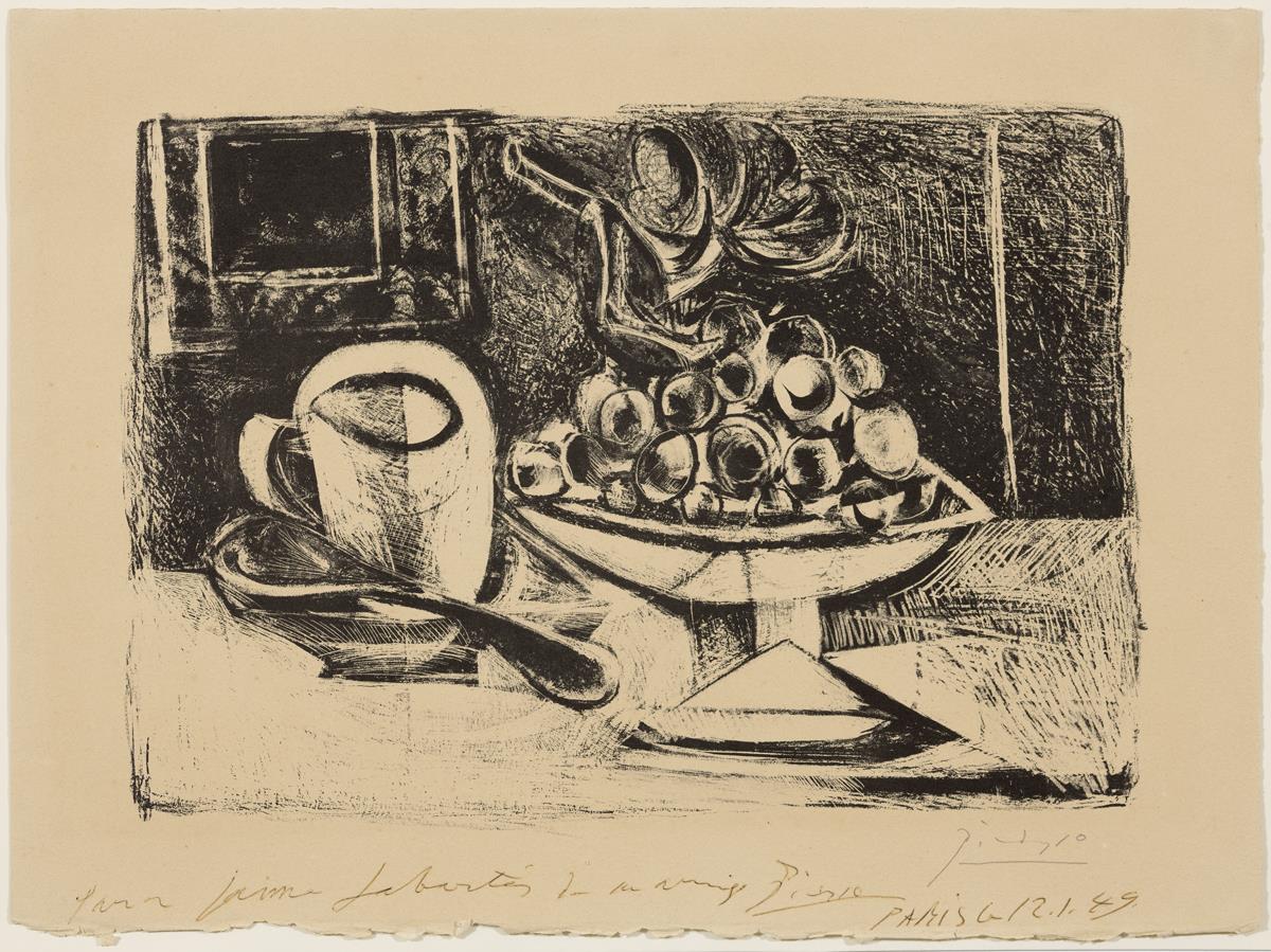 Lithograph. Lithographic ink, dry paintbrush, lithographic crayon, and scraper on stone; printed on vellum paper (Sabartés proof, third and final state)