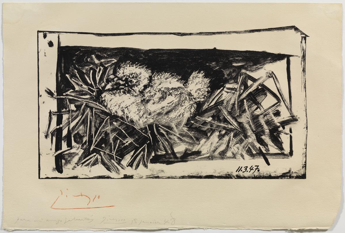 Lithograph. Lithotint and scraper on transfer paper transferred to stone; printed on Arches vellum paper (Sabartés proof)