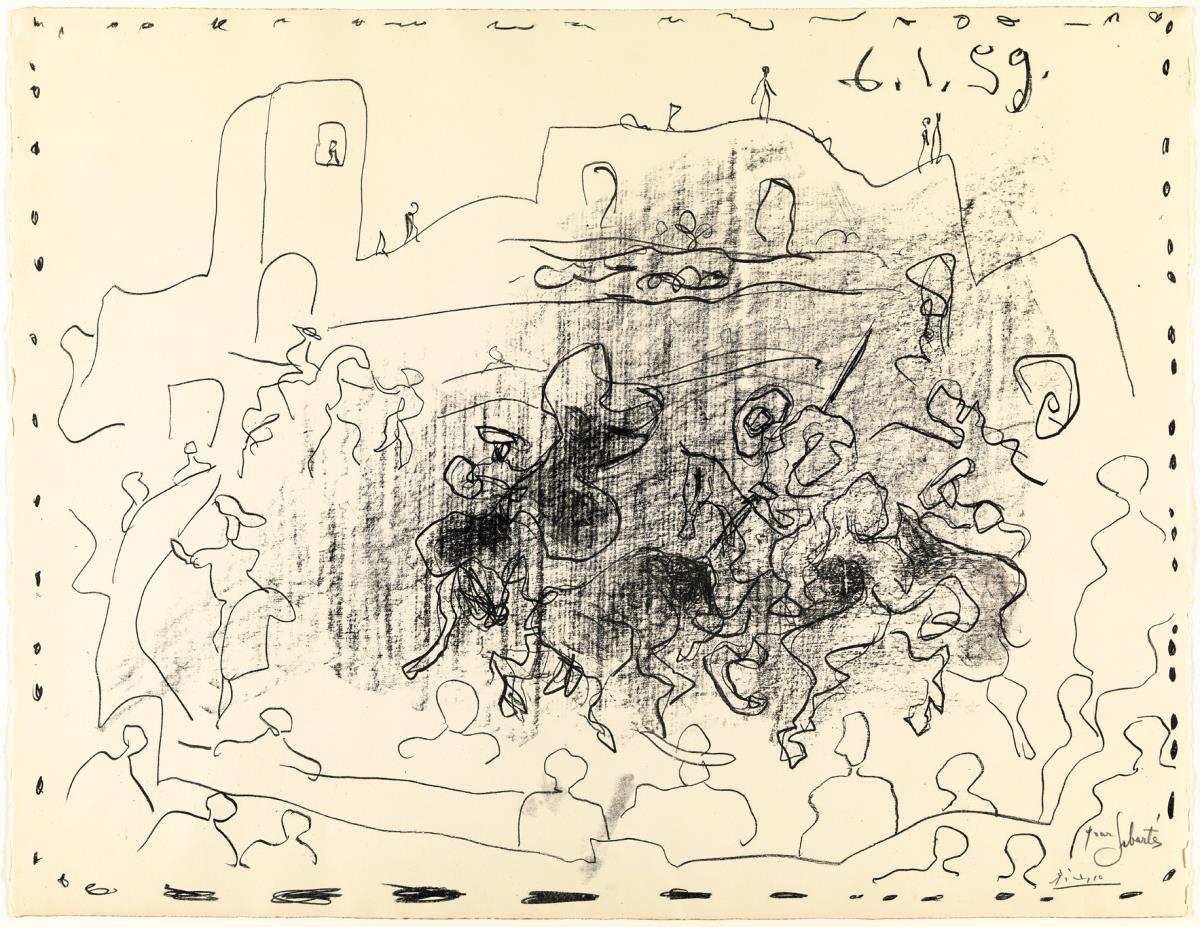 Lithograph. Pen and lithographic crayon with frottage on transfer paper transferred to stone, printed on Arches vellum paper (Sabartés proof)