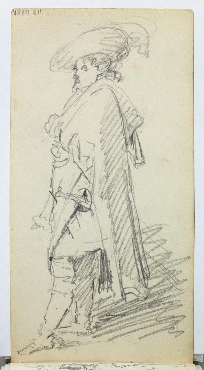 Musketeer Musketeer Musketeer Author Isidoro Brocos Título Musketeer Execution place Paris Medium Graphite pencil on paper Dimensions 14 cm x 7 cm Acquisition data Gift of Manuel Chamoso Lamas, 1971 Inventory number MPB 112.078R ¿Necesitas una reproducción de esta obra? The entire documentation process is, by definition, a work in progress. If you have additional information on this register or spot any errors, please send us your comments. Collections Drawing Exhibitions 2020-2021- "Picasso. Els Quaderns". Museu Picasso, Barcelona, Barcelona (Espanya) 2015- "O primeiro Picasso. A Coruña 2015". Museo de Belas Artes da Coruña, la Corunya (Espanya) Related artworks of The Collection Enllaç cap a obra Soldier of the Golden Age and Other Sketches Soldier of the Golden Age and Other Sketches 1895 Enllaç cap a obra Paris Sketchbook, 1875-1876 Paris Sketchbook, 1875-1876 Related exhibitions Enllaç cap a exposició Picasso. The sketchbooks Fri, 18/12/2020 - 12:00 - Sun, 04/04/2021 - 12:00 Picasso. The sketchbooks