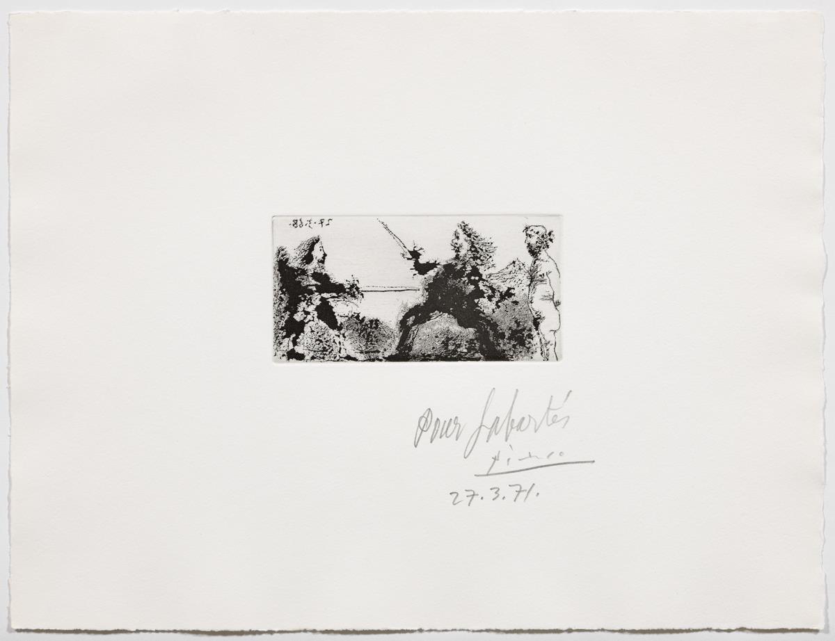 Sugar-lift aquatint on greased copper; printed on Rives vellum paper (Sabartés proof)