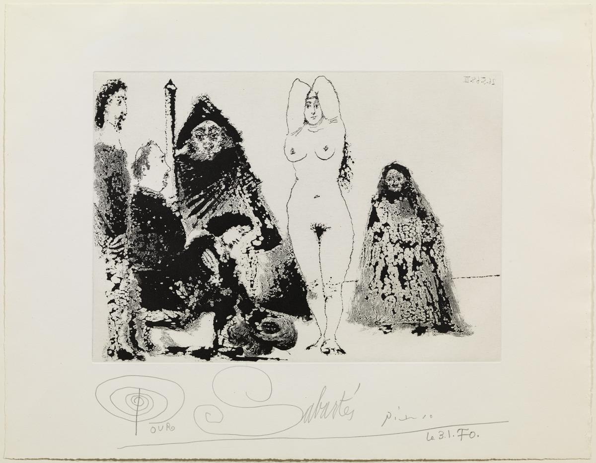 Sugar-lift aquatint on greased copper; printed on Rives vellum paper (Sabartés proof)