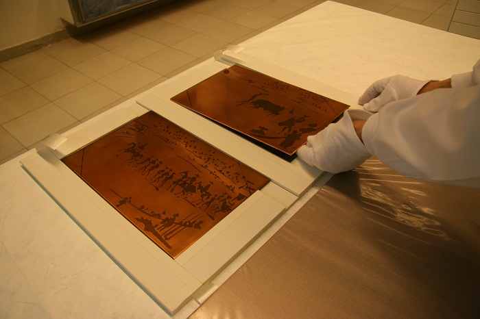 This month of May, The Pigeons (1957) and the plates Parade of the bullfighters (1957) and Plunging a pair of "banderillas" into the bull (1957) have travelled to the Museo del Palacio de Bellas Artes de Mèxic for the exhibition "Picasso revealed by David Douglas Duncan" which can be seen until July 20th. But how have the works been prepared to go away on this trip?