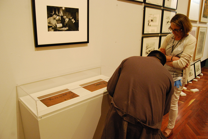 Finally, the case, now prepared to travel, is weighed so as to include the details on the transport information sheet and is labelled with the pertinent file number. The works are usually accompanied by a technician of the museum, called “courier”, who is the person charged with supervising the processes of unpacking and installation of the work, to detect any change or incident, and if required, to physically intervene in the work. In this image we can see the courier, our head of restoration Reyes Jiménez, while installing of the two copper plates in the display case of the exhibition in Mexico.
