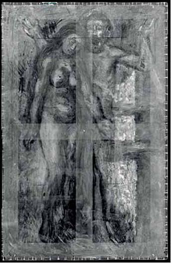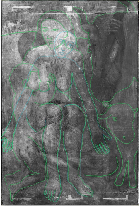 Pablo Picasso, The Tragedy, 1903, oil on wood, National Gallery of Art, Washington, Chester Dale Collection © 2012 Estate of Pablo Picasso/Artists Rights Society (ARS), New York | X radiograph of The Tragedy