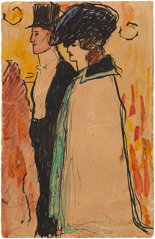 Pablo Picasso. “Rastaquouères”. Paris, 1901. Pen and Indian ink and watercolour on paper. 18 x 11.5 cm. Given by the Barcelona City Council, 1963. Museu Picasso, Barcelona. MPB 4.772 | Pablo Picasso. Can-Can dancer. 1901. Pen and Indian ink and watercolour on paper. 17 x 11.5 cm. Museu Picasso, Barcelona. MPB 4.774