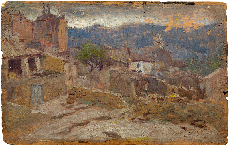 Pablo Picasso. “Salón del Prado”. Madrid, 1897. Oil on wood. 10 x 15.5 cm. Gift of Pablo Picasso, 1970. Museu Picasso, Barcelona. MPB 110.160 | Pablo Picasso. Partial view of Horta de Sant Joan. Horta de Sant Joan, 1898-1899. Oil on wood. 10 x 15.5 cm. Gift of Pablo Picasso, 1970. Museu Picasso, Barcelona. MPB 110.173