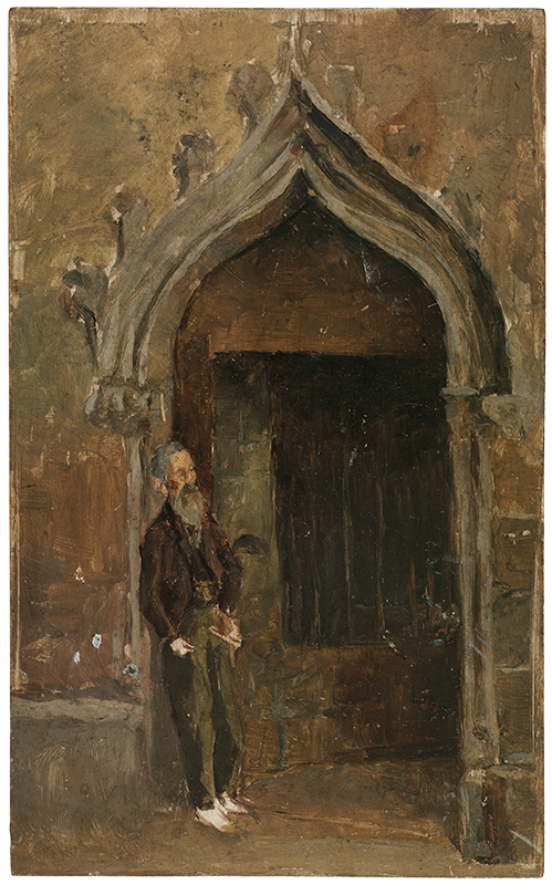 Pablo Picasso. Mountain landscape. Malaga, June-July 1896. Oil on canvas. 60.5 x 82 cm. Gift of Pablo Picasso, 1970. Museu Picasso, Barcelona. MPB 110.008 | Pablo Picasso. Man leaning against a Gothic doorway of the Cathedral of Barcelona. Barcelona, 1896. Oil on wood. 20.5 x 12.6 cm. Gift of Pablo Picasso, 1970. Museu Picasso, Barcelona. MPB 110.203