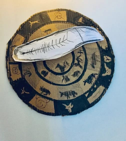 El plat de ceràmica de Cursa de Braus i peix ha estat recreat amb cartró i paper per part de Juanes, de sisè curs