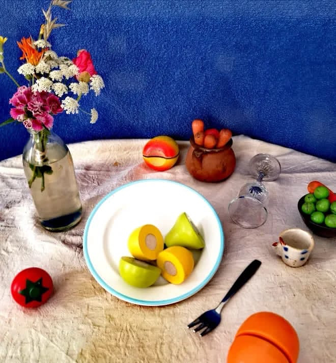 Malena, de segon curs, ha construït una nova natura morta amb el blau intens de la Natura morta de Picasso