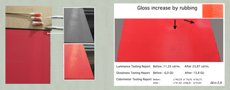 Luminance, colour and gloss measurements were also performed in the test painting. Figure 15 evidences the effects of removing the velvety superficial features which modifies dramatically the perception of the painted surface.