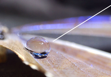 Fig.6 (a-b) a) A drop of water on a butterfly wing. b) Lotus hydrophobic surface.