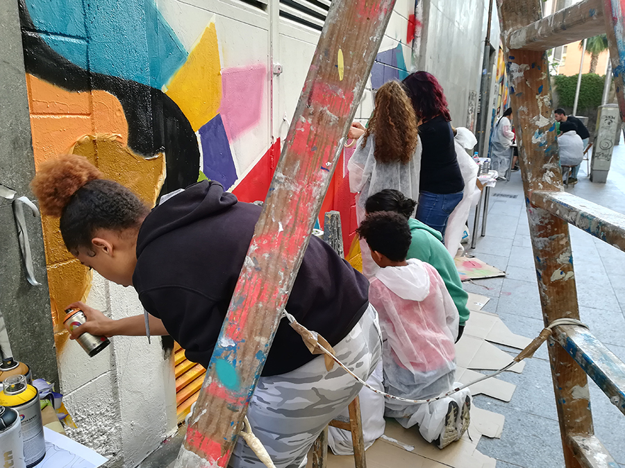 For more than a decade, the museum has collaborated with not-for-profit social entities in the neighbourhoods around the museum - la Ribera, Santa Caterina and Sant Pere. One of the most consolidated collaborations with social entities, is with the Fundació Comtal, which carries out a hosting service for children in extracurricular hours, as well as support for families. With the Fundació Comtal, the museum organises a workshop with kids and teenagers, jointly carried out with the Associació Art&Coop and given by the artist Karen Rosentreter Villarroel, about the topic of murals which culminates with the transformation of a door of the premises of the foundation with a graffiti, painted by the boys and girls. The museum also offers various activities to the children and their families and ongoing assessment and advice, and collaborates with the programme Construeix-te (Build yourself) for newcomer kids and youths.