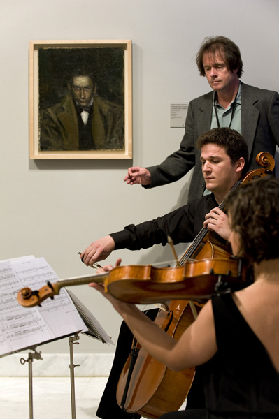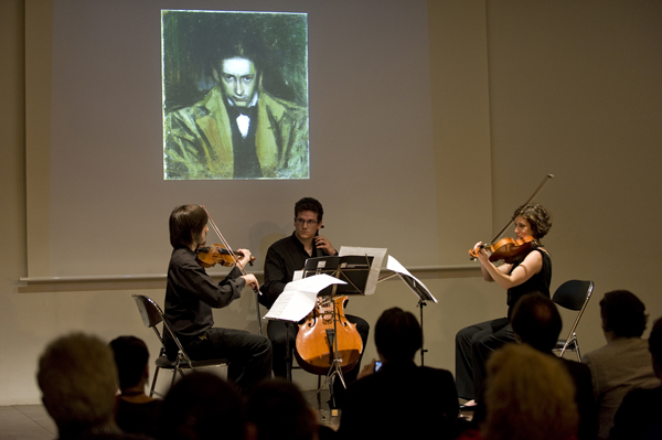 This work, one of the portraits that Picasso did of his friend from youth, was the inspiration for the pieces composed by Daniel López and Guillem Ponsí, respectively and performed by Èric Masip on the violin, Alicia Domínguez and on the viola i Marc Martí on the cello.