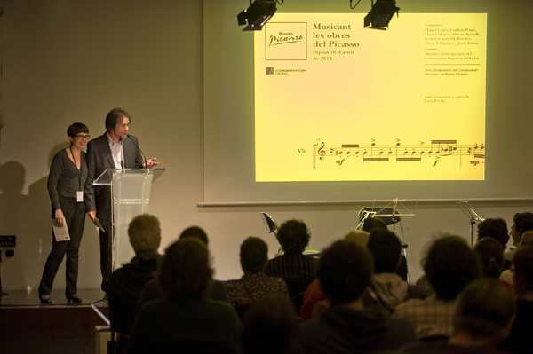 These compositions were premiered in the museum itself in two formats, the first with a musical visit in which the piece was performed in front of the work that inspired it and then immediately afterwards with a final concert in the hall. The concert was introduced by Josep Perelló, professor from the University of Barcelona and leader of the research group OpenSystems.