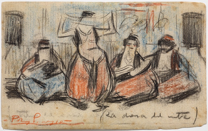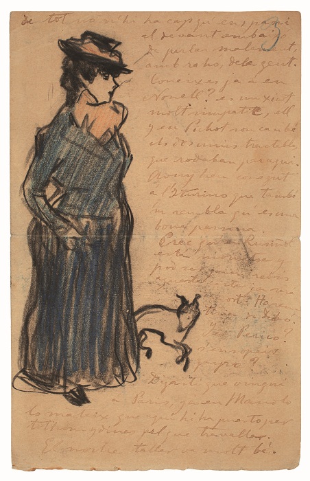 Pablo Picasso. Letter from Picasso and Casagemas, with drawings by Picasso, to Ramon and Jacint Reventós Bordoy. Paris, 19 November 1900. Conté crayon, coloured pencils and pen and ink on paper. Museu Picasso, Barcelona. Acquisition 1997. MPB 113.025c © Succession Pablo Picasso, VEGAP, Madrid 2015