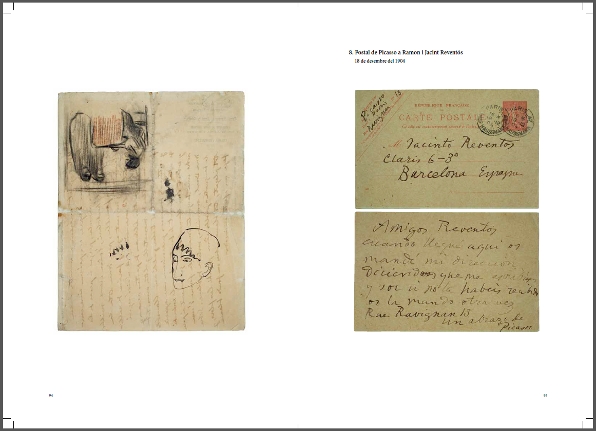 On the occasion of the exhibition “Picasso and Reventós”, the Museu Picasso commissioned the specialist Marylin McCully with the edition of the above-mentioned publication on the epistolary relationship between Picasso and his friends Ramon and Jacint Reventós. The result is an unusual book that speaks to us more about life than about art: Picasso and Reventós: A correspondence among friends. The volume includes the translation and transcription of the 27 letters that are known between Picasso and these Barcelonian friends from youth (including those that Jacint’s son also sent to the artist). The originals come from the Fundació Picasso-Reventós, the Museu Picasso, the Musée national Picasso-Paris and a private collection. The motif reproduced on the cover is the envelope of one of the letters and that curiously was where Picasso ended up «filing» the letters from his friends, the Reventós family.