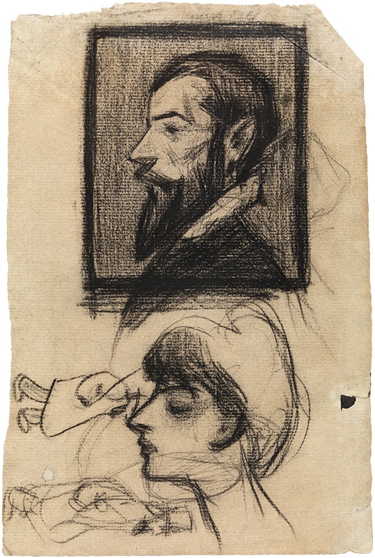 Pablo Picasso. Head of a man, after El Greco, and other sketches. Barcelona, c. 1899. Conté crayon on laid paper. 24 x 16.1 cm. Gift of Pablo Picasso, 1970. Museu Picasso, Barcelona. Photo: Estudi Gasull. MPB 110.641 | Pablo Picasso. Grecoesque figure. Barcelona, c. 1899. Conté crayon on paper. 21.8 x 15.5 cm. Gift of Pablo Picasso, 1970. Museu Picasso, Barcelona. Photo: Estudi Gasull. MPB 110.316R