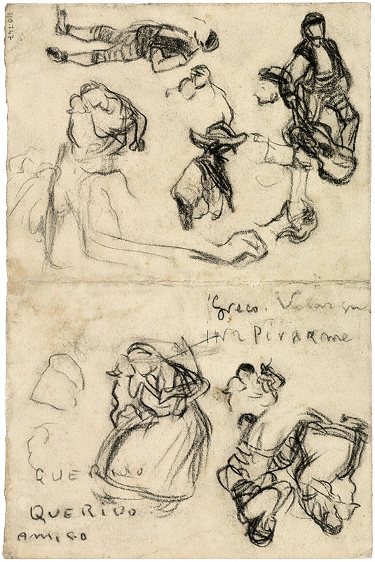 A year later, during his stay in Horta de Sant Joan, he filled a sheet of drawings with inscriptions asking El Greco and Velázquez to inspire him.