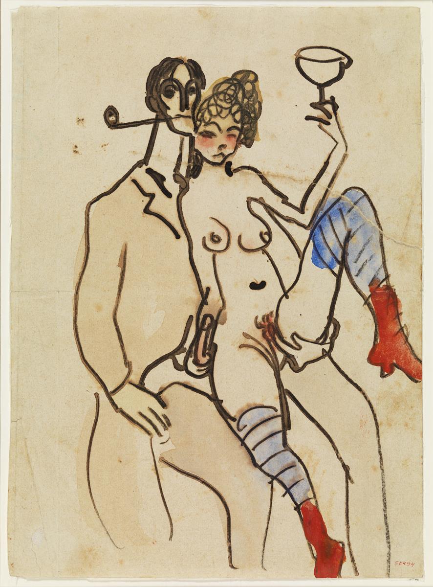 Tinta a pluma, aguada, acuarela y lápiz Conté sobre papel