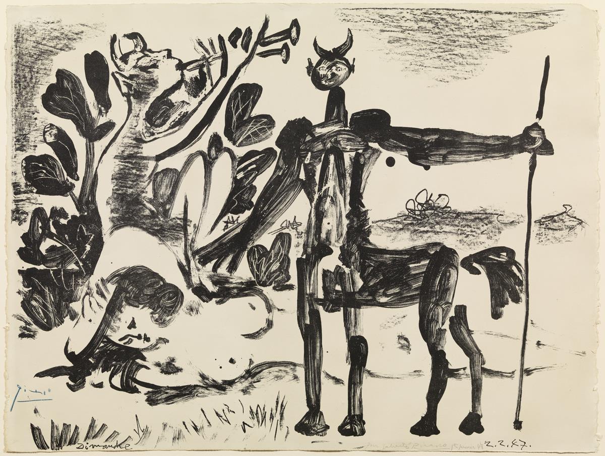 Litografía. "Lavis", lápiz litográfico, frottage y rascador sobre papel reporte transferido sobre piedra; estampado sobre papel vitela Arches (prueba Sabartés)