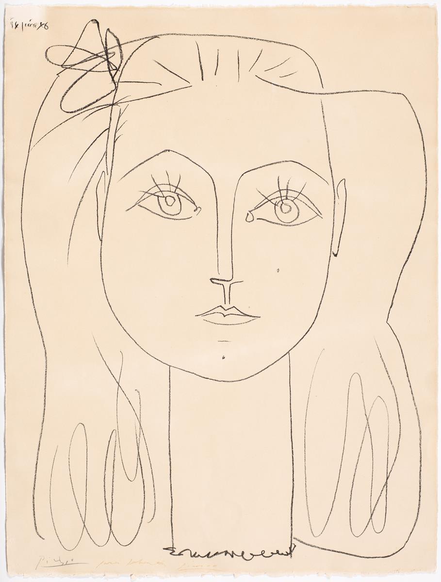 Litografía. Lápiz litográfico sobre papel reporte transferido sobre piedra; estampado sobre papel vitela Arches (prueba Sabartés)