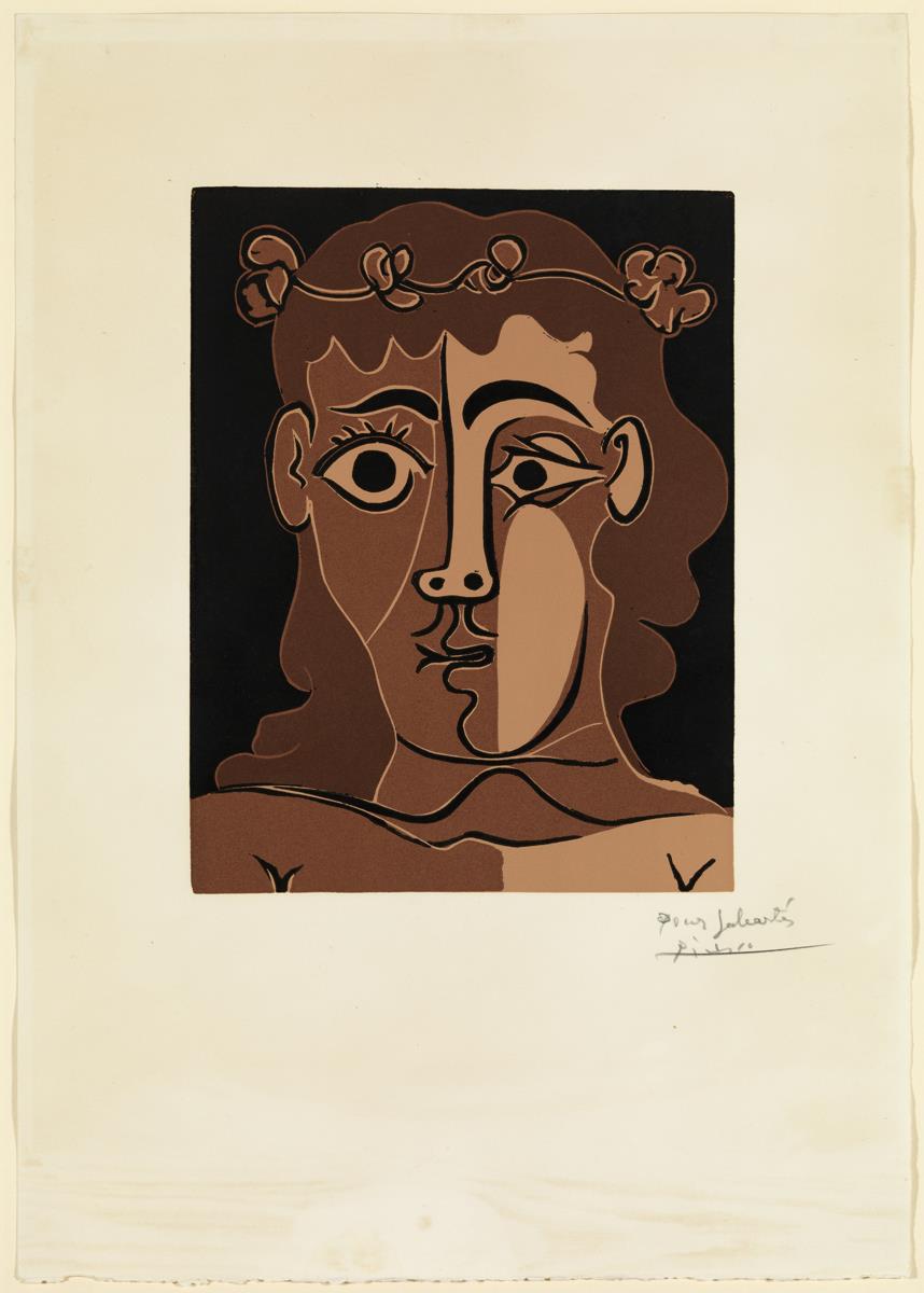 Grabado con gubia sobre linóleo; estampado en cuatro colores sobre papel vitela Arches (prueba Sabartés, III estado y definitivo)