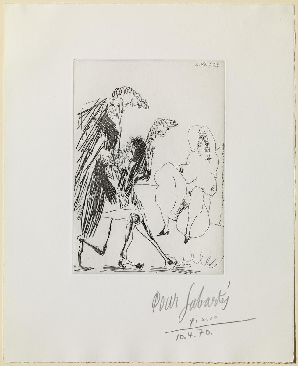 Aguafuerte sobre cobre; estampado sobre papel vitela Rives (prueba Sabartés)