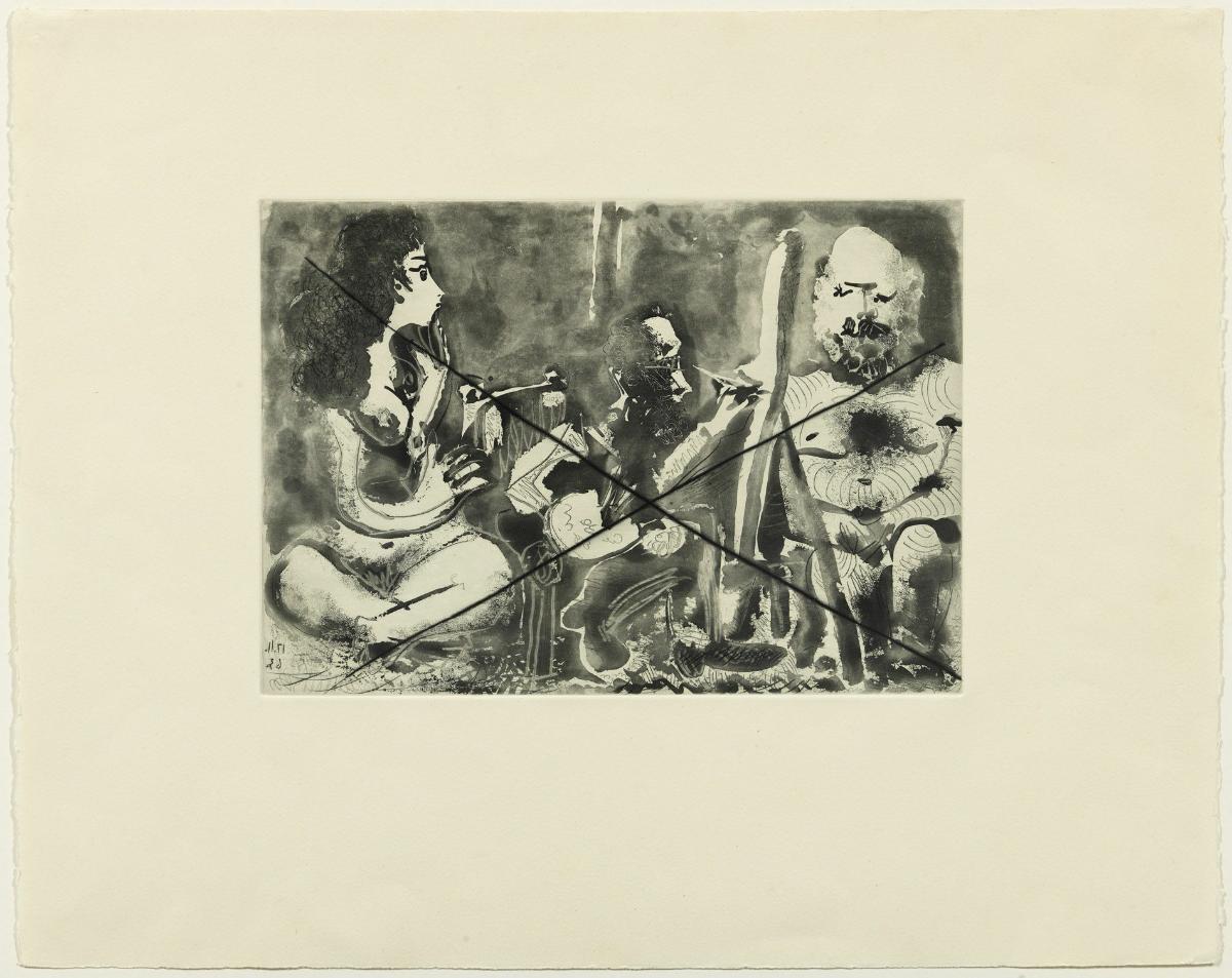 Aguatinta al azúcar con mordida a mano y aguafuerte sobre cobre; estampado sobre papel vitela Arches (prueba de plancha anulada)