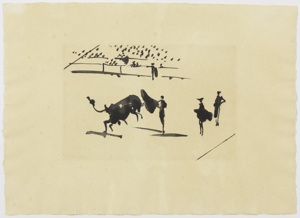 Aiguatinta al sucre amb mossegada a la mà sobre coure; estampat sobre paper vitel·la pur fil Guarro (prova de planxa anul·lada)