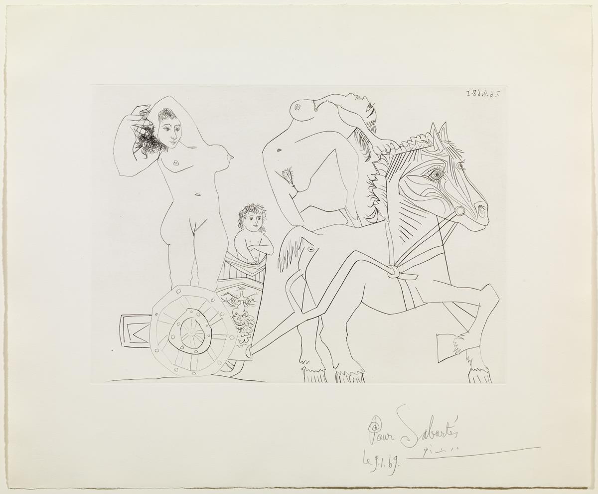 Punta seca sobre coure; estampat sobre paper vitel·la Rives (prova Sabartés)