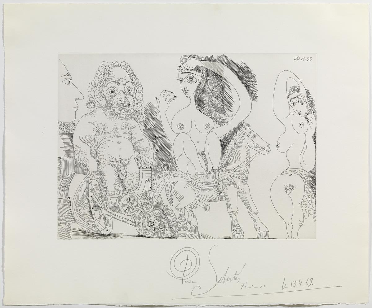 Aiguafort sobre coure; estampat sobre paper vitel·la Rives (prova Sabartés)