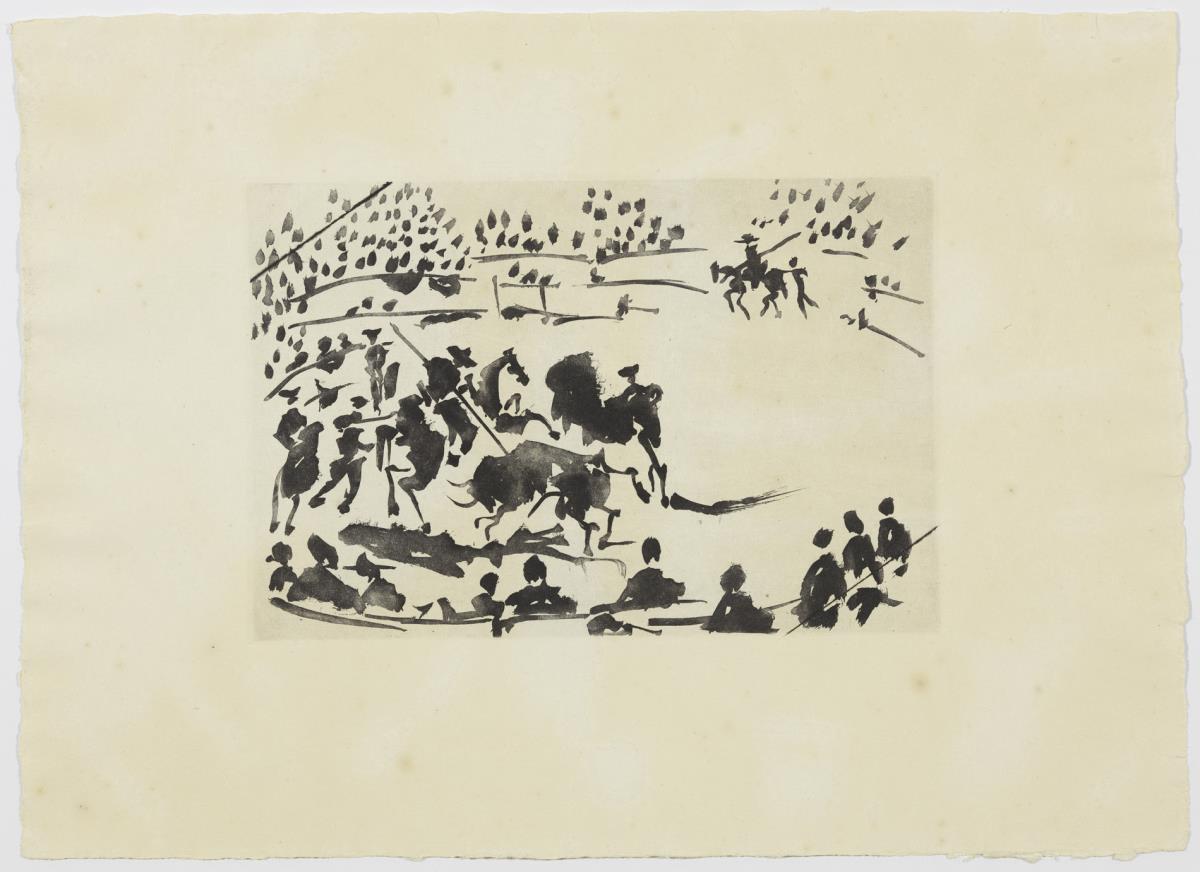 Aiguatinta al sucre amb mossegada a la mà sobre coure; estampat sobre paper vitel·la pur fil Guarro (prova de planxa anul·lada)