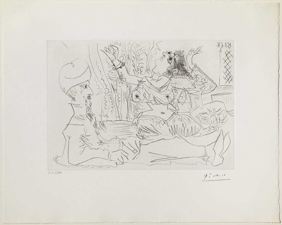 Schahrazade Schahrazade Schahrazade Autor Pablo Picasso Títol Schahrazade Lloc d'execució Mougins Tècnica Punta seca sobre coure; estampat sobre paper vitel·la Rives (prova d'artista numerada) Dimensions 22.5 cm x 32 cm Número de registre MPB 112.637 Necessites una reproducció d'aquesta obra? Tota documentació és per definició un treball en curs. Si tens informació addicional sobre aquest registre o hi detectes cap error, envia'ns els teus comentaris. Col·leccions Obra gràfica