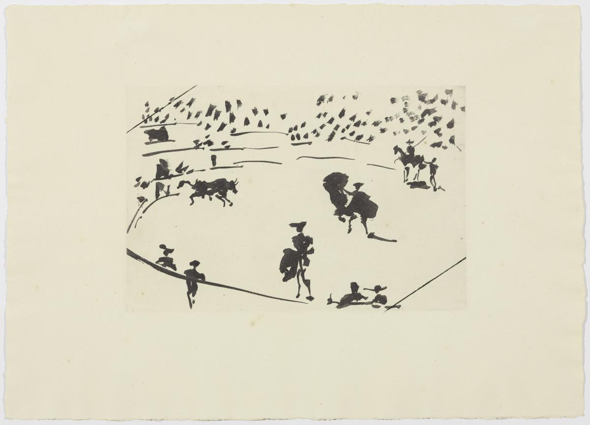 Aiguatinta al sucre amb mossegada a la mà sobre coure; estampat sobre paper vitel·la pur fil Guarro (prova de planxa anul·lada)