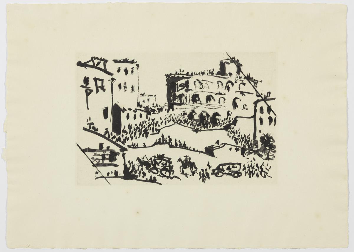 Aiguatinta al sucre amb mossegada a la mà sobre coure; estampat sobre paper vitel·la pur fil Guarro (prova de planxa anul·lada)