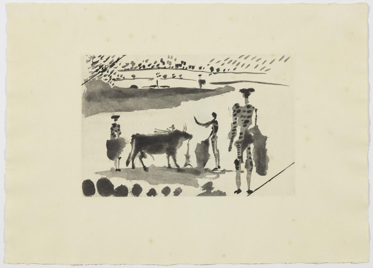 Aiguatinta al sucre amb mossegada a la mà sobre coure; estampat sobre paper vitel·la pur fil Guarro (prova de planxa anul·lada)