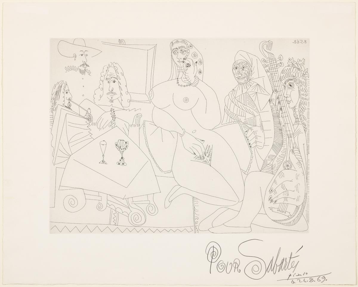 Aiguafort sobre coure; estampat sobre paper vitel·la Rives (prova Sabartés)