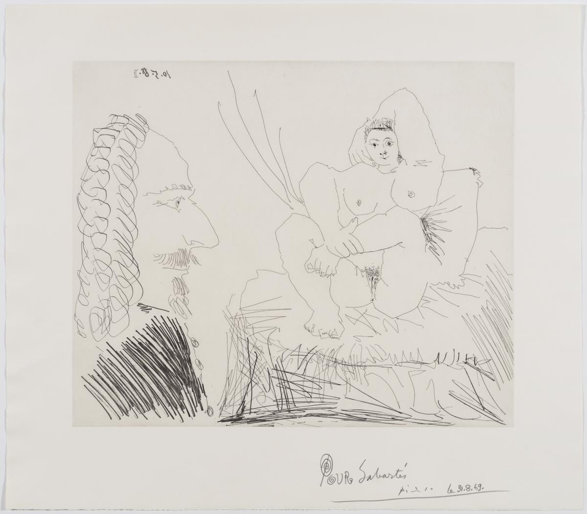 Aiguafort sobre coure; estampat sobre paper vitel·la Rives (prova Sabartés)