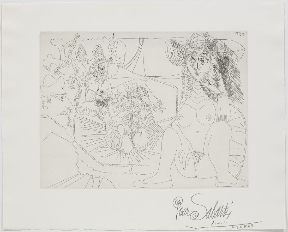 Aiguafort sobre coure; estampat sobre paper vitel·la Rives (prova Sabartés)